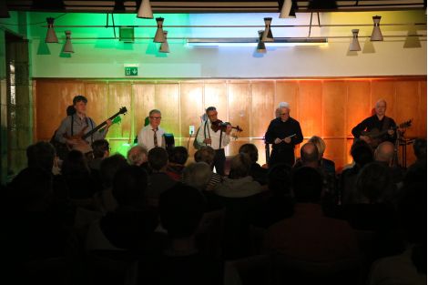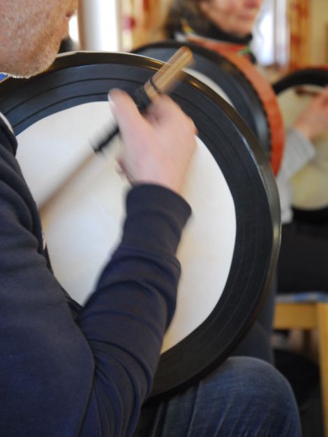 Das BodhránWeekend lebt nicht nur vom qualifizierten Unterricht – auch das Rahmenprogramm dreht sich ganz um die Bodhrán: Ein Fachvortrag, etwa zu Bodhránbau oder -geschichte, bereichert das Programm – oft mit externen Referent:innen. Am Samstagabend gibt es ein Konzert mit einer renommierten Irish-Folk-Band, gefolgt von einer Session, die sich bisher jedes Mal ergeben hat. Bereits am Freitagabend stimmen wir uns nach der ersten Unterrichtseinheit mit einer Slow Session und einem Whiskey Tasting auf das Wochenende ein. Zudem bietet das BodhránWeekend eine besondere Gelegenheit, Instrumente und Zubehör zu testen, zu vergleichen und zu erwerben. Regelmäßig ist der weltweit führende Tippermaker Stevie Moises mit seiner mobilen Drehbank vor Ort – er steht auch zwischen den Unterrichtseinheiten mit Rat und Tat zur Seite.